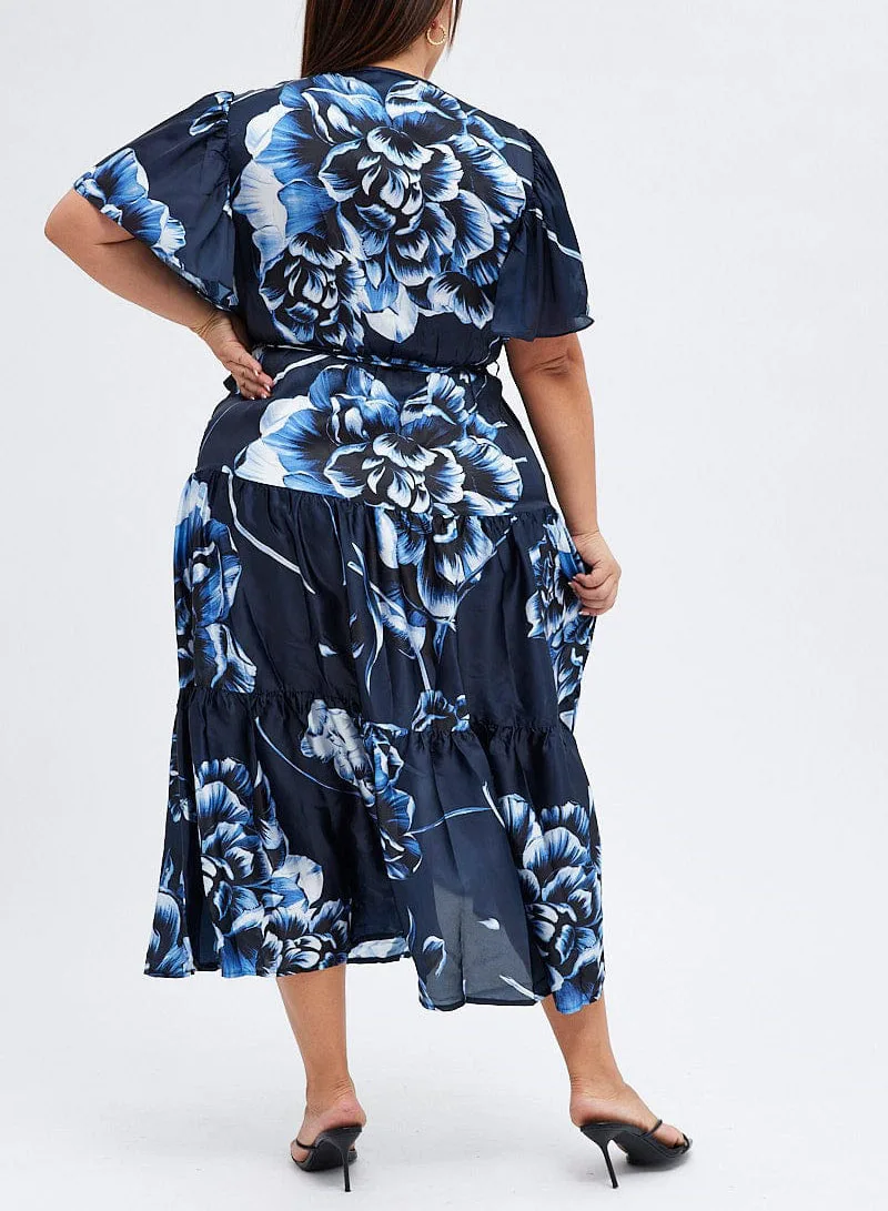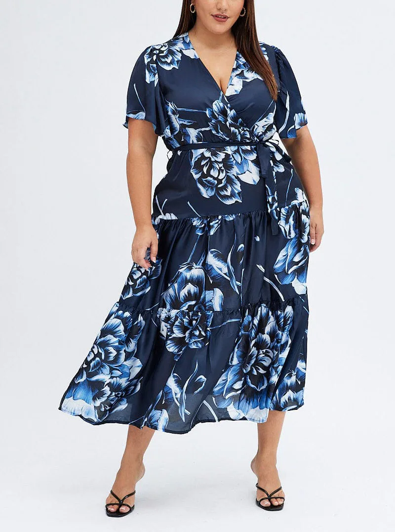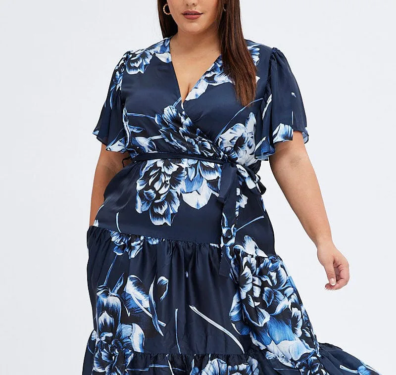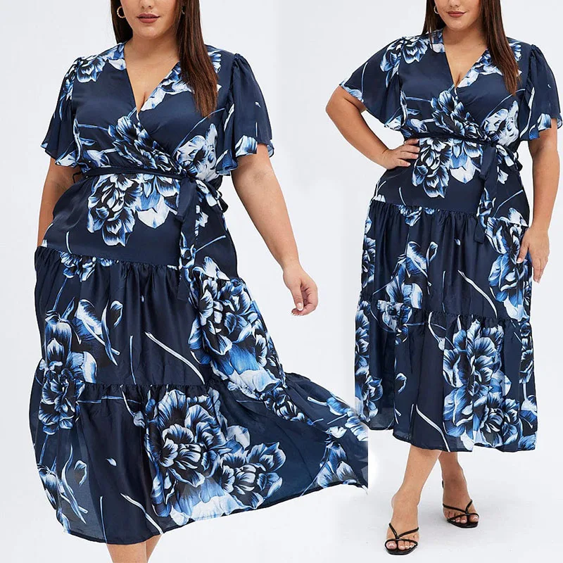 OEM Manufacturer Fashion Designer Midi Plus Size Chiffon Dress Women Custom logo Printed Floral Dress